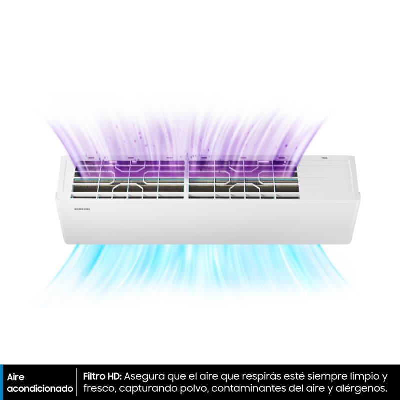 Aire acondicionado split frío/calor diseñado para brindar confort durante todo el año. Incorpora tecnología Inverter, que optimiza el consumo energético, mantiene una temperatura estable y reduce el nivel de ruido. Con una capacidad de 2580 frigorías, es ideal para climatizar ambientes de manera eficiente y uniforme. Su diseño moderno y funcional se adapta fácilmente a distintos espacios, ofreciendo rendimiento, ahorro y confiabilidad con la calidad Samsung.