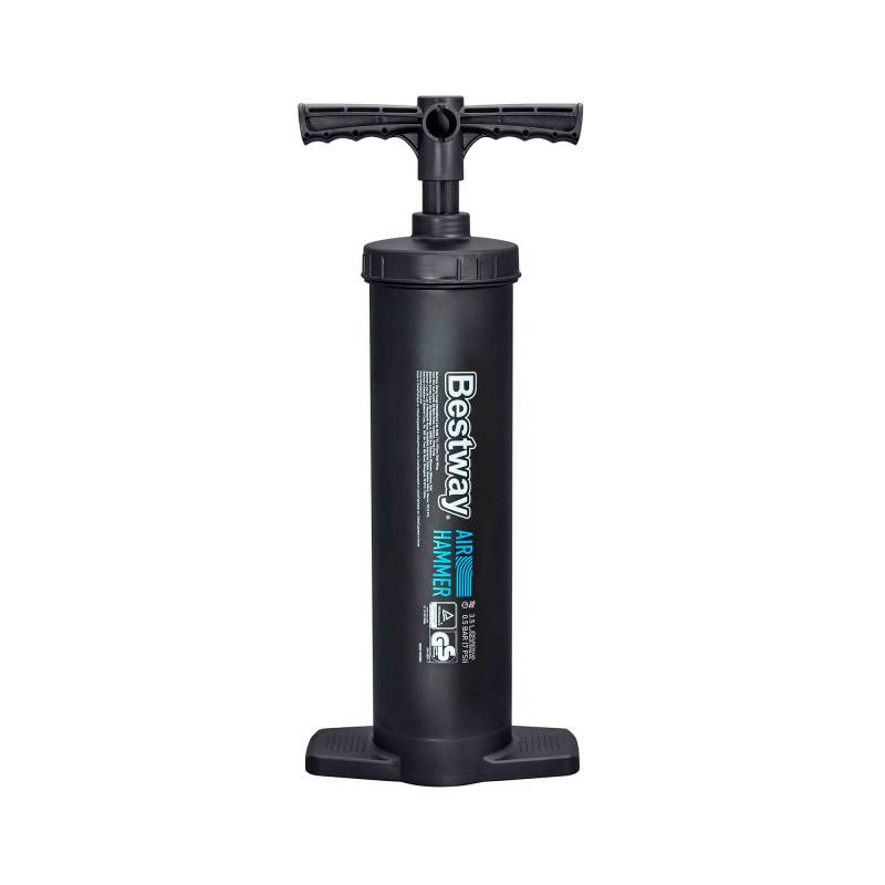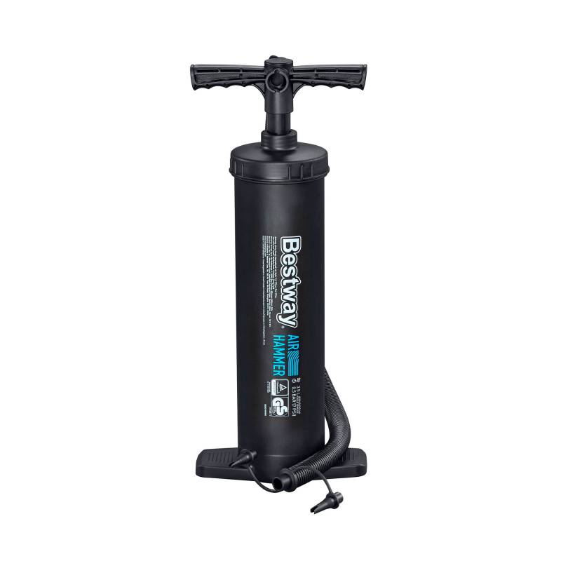 La bomba de aire manual Bestway® Air Hammer? 3500 ML infla flotadores, colchones hinchables, balsas, juguetes y otros productos hinchables. Diseñada para ofrecer el máximo flujo de aire, esta bomba cuenta con un volumen de carrera de 3,5 L/ ciclo y con una gran cámara de aire para un inflado rápido. Libera un flujo de aire continuo tanto en la carrera ascendente como en la descendente, lo que significa que podrás inflar tus artículos más rápido que con las bombas de acción simple. Es ideal en situaciones en las que no tienes acceso a electricidad o cuando necesitas inflar el artículo sobre la marcha. Además, se incluyen tres adaptadores de válvula universales que se ajustan a casi todas las válvulas de inflado. ¡Podrás inflar una gran variedad de artículos con la bomba Bestway Air Hammer!