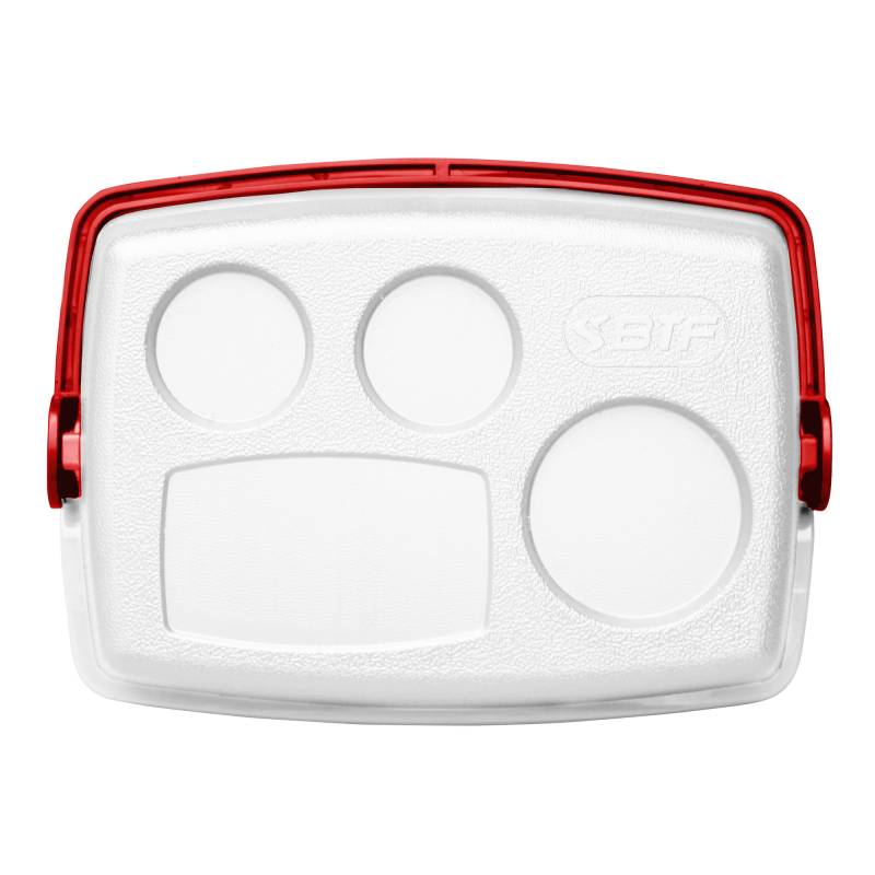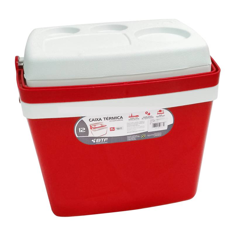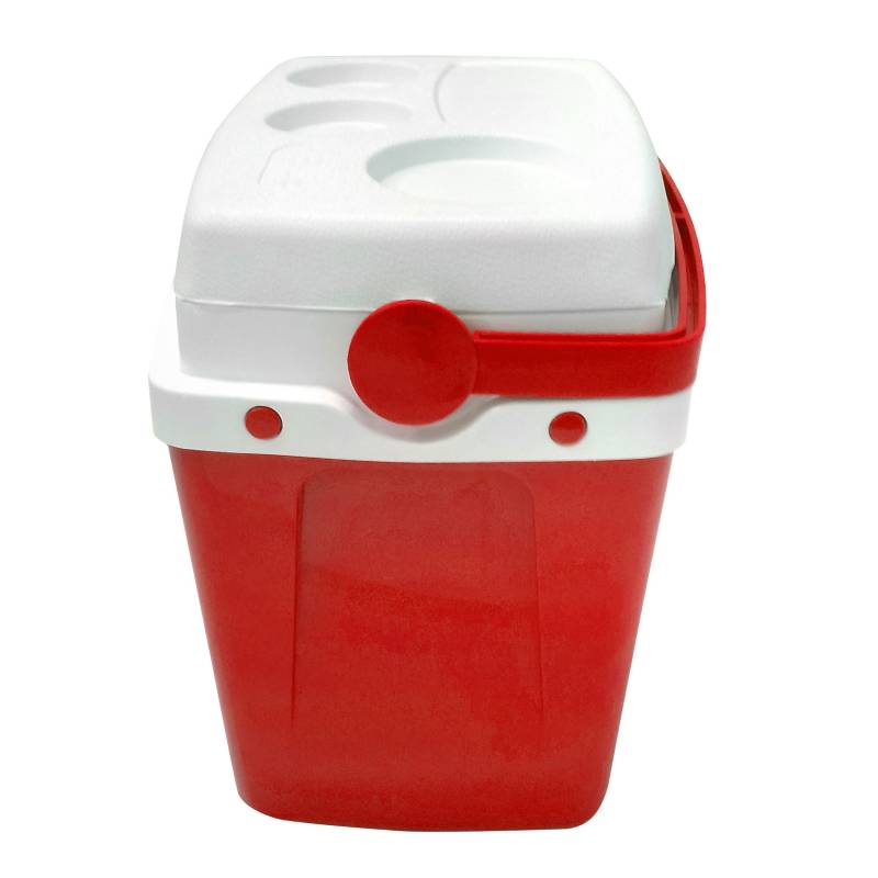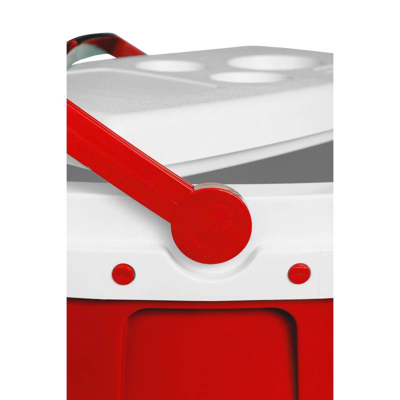 Conservadora de polipropileno de 12 litros. Rojo y tapa color blanco
