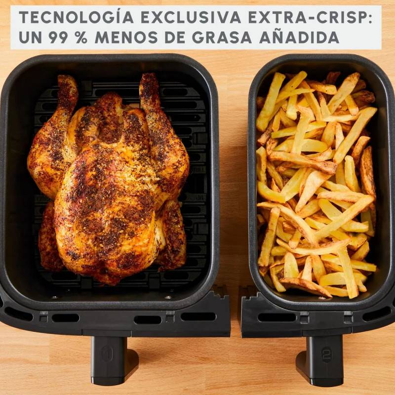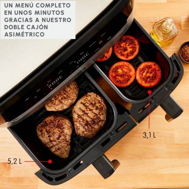 - Capacidad: Capacidad total 8,3L. Bowls asimétricos (cesta extragrande 5,2L y pequeña 3,1L).