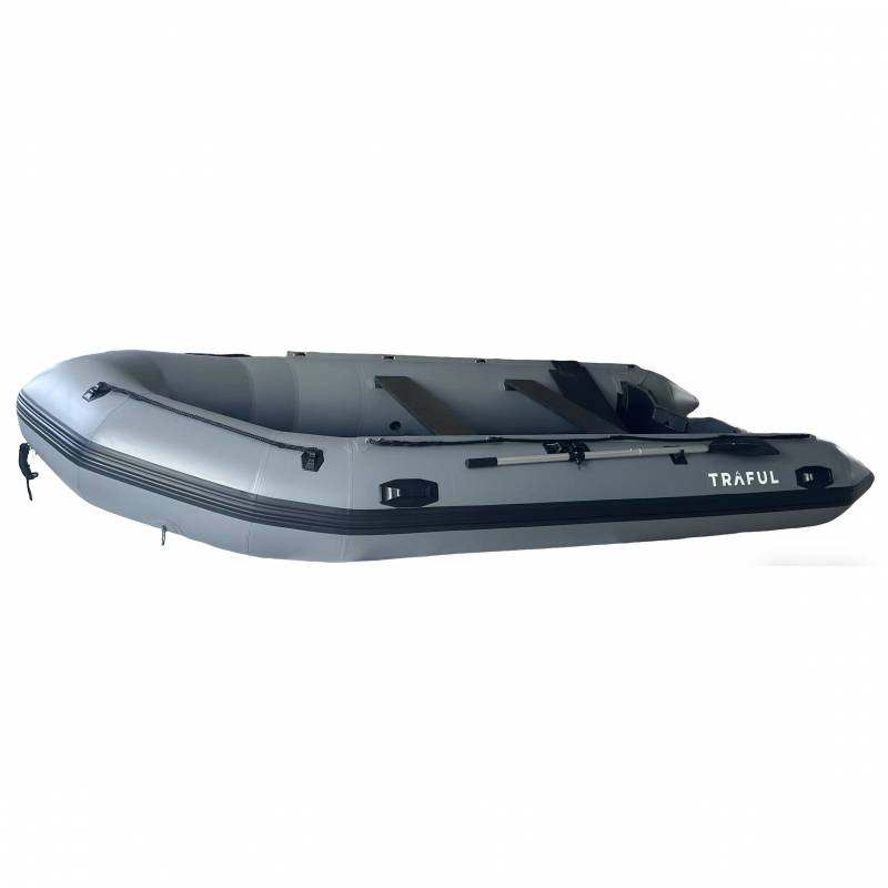 Esta lancha inflable gris TRAFUL es súper versátil: perfecta para relajarte en el agua o para usarla de forma práctica. Está construida de forma robusta (costuras reforzadas, anillas D resistentes para sujetar equipo) y es segura (diseño multicompartimento para mayor tranquilidad). Viene en distintos tamaños (desde compacta hasta 14’1”). Se puede inflar/desinflar fácilmente para salidas casuales (pesca, paseos) y permite instalar un motor (hasta 50 HP) si necesitás recorrer más distancia. Una opción todo-en-uno para cualquier plan en el agua.