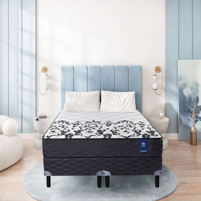 El sommier y colchón de resortes Branson King Size Serta es la opción que brinda el punto justo de firmeza, gracias a la incorporación de resortes LFK y espumas de alta densidad. Entre ellas, la espuma Eco Zoned, elaborada a partir del reciclado de sobrantes de espumas limpias, lo convierte en un producto amigable con el medio ambiente. Cuenta con un exclusivo diseño en tejido de punto en su superficie que garantiza un alto grado de suavidad al contacto. Además, el sommier aporta una sólida estructura de materiales de alta calidad, brinda estabilidad y ayuda a prolongar la vida útil del colchón. La tela antideslizante de su superficie permite contener el desplazamiento del colchón e impedir interrupciones durante el sueño. Serta es una marca reconocida por ser pionera en la innovación del sueño durante más de 90 años, llevando productos de calidad a más de 150 países en todo el mundo. Es sinónimo de confort y soporte superior, con los estándares de calidad más altos del mercado.