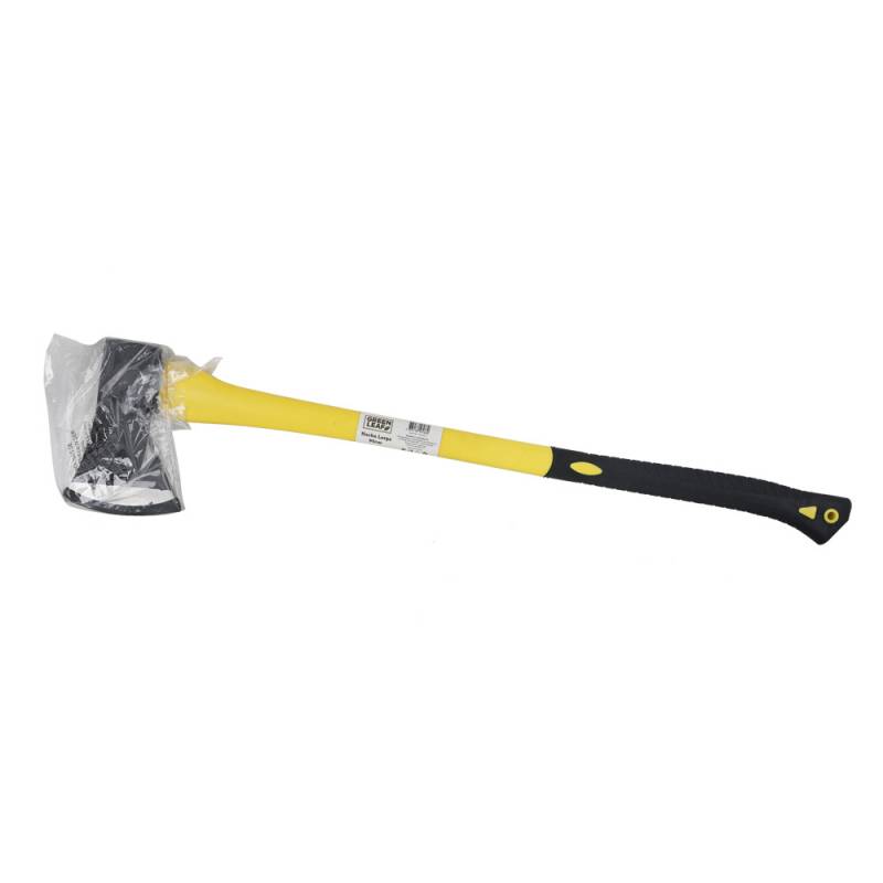 Hacha con cabeza de acero y mango de fibra de vidrio, lo suficientemente afilada como para partir la madera de los árboles.