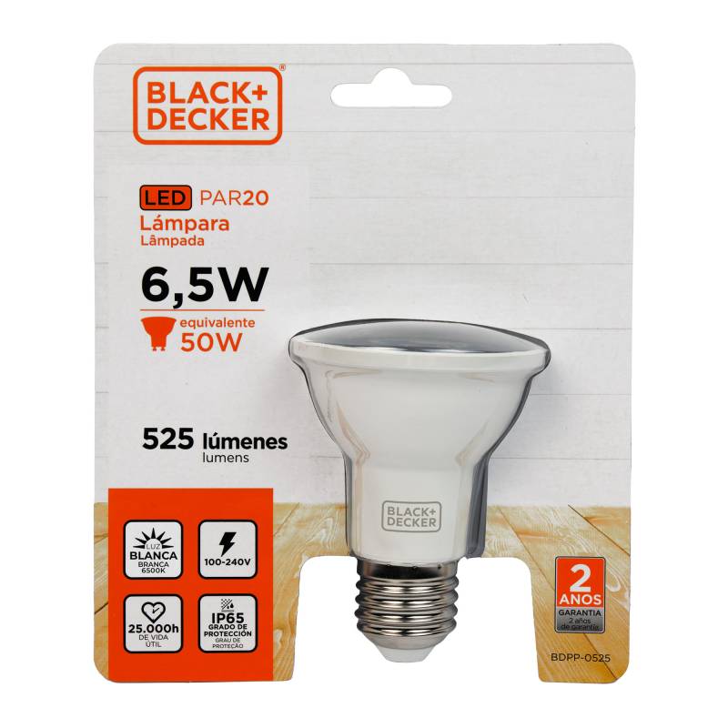 La lámpara led Black+Decker 6.5W PAR20 es perfecta para quienes buscan una iluminación focalizada de alta calidad. Diseñada para ofrecer una luz potente y concentrada, es ideal para resaltar detalles en espacios como salas de estar, cocinas, vitrinas o incluso para iluminación decorativa. Gracias a su tecnología led de última generación, proporciona un ahorro energético del 85% comparado con las lámparas halógenas tradicionales, y su vida útil de hasta 25,000 horas asegura rendimiento y durabilidad a largo plazo. Su diseño con rosca E27 la hace fácil de instalar en la mayoría de las luminarias.