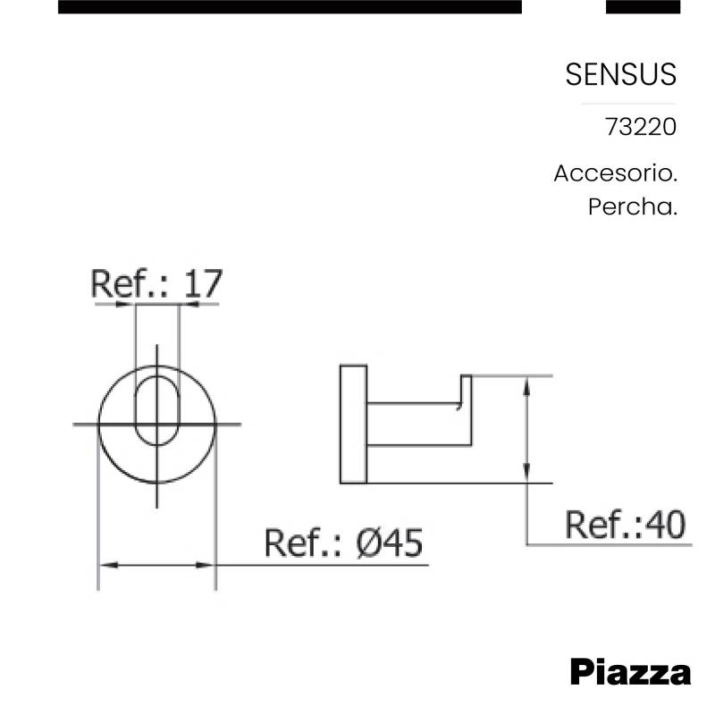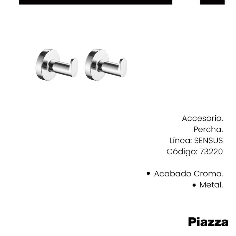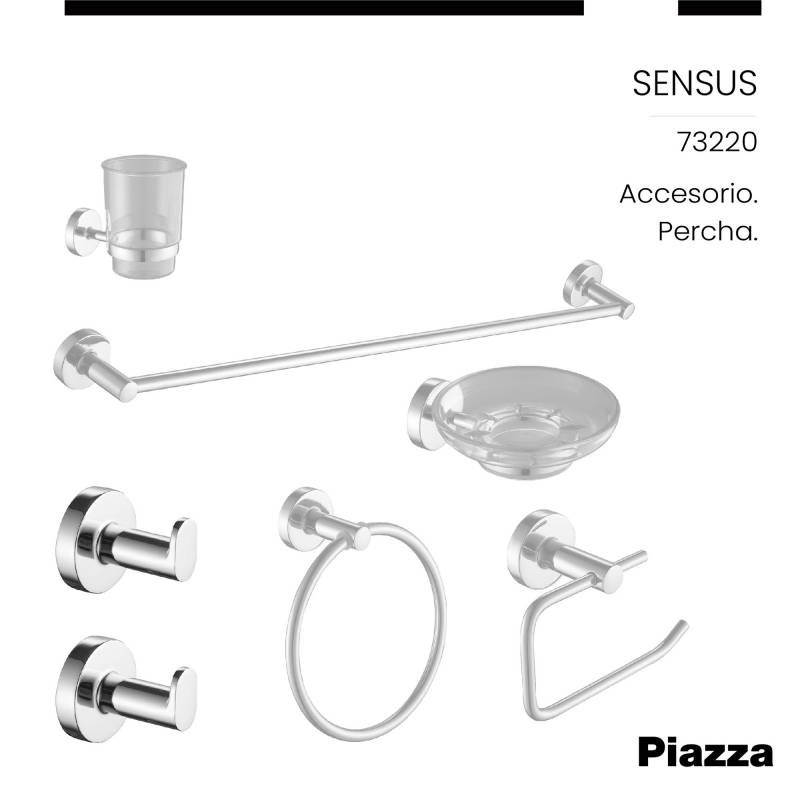Perchero Baño Piazza Sensus Cromado Gancho Pared Toalla (73220) Innovación en griferías de alta calidad, diseño y tecnología Incluye elementos de fijación