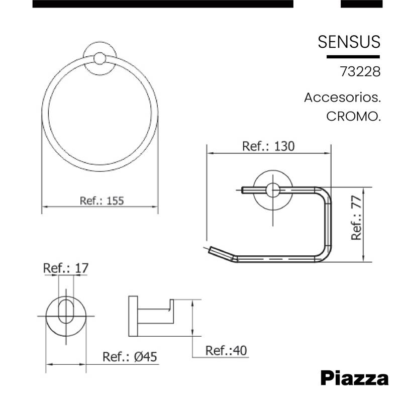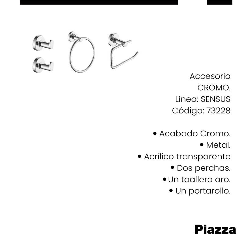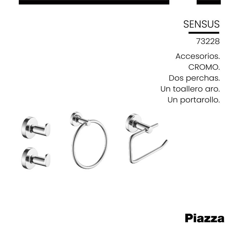 Set Accesorios Sensus Cromo Kit 4 Piezas Piazza (73228) Innovación en griferías de alta calidad, diseño y tecnología Incluye elementos de fijación
