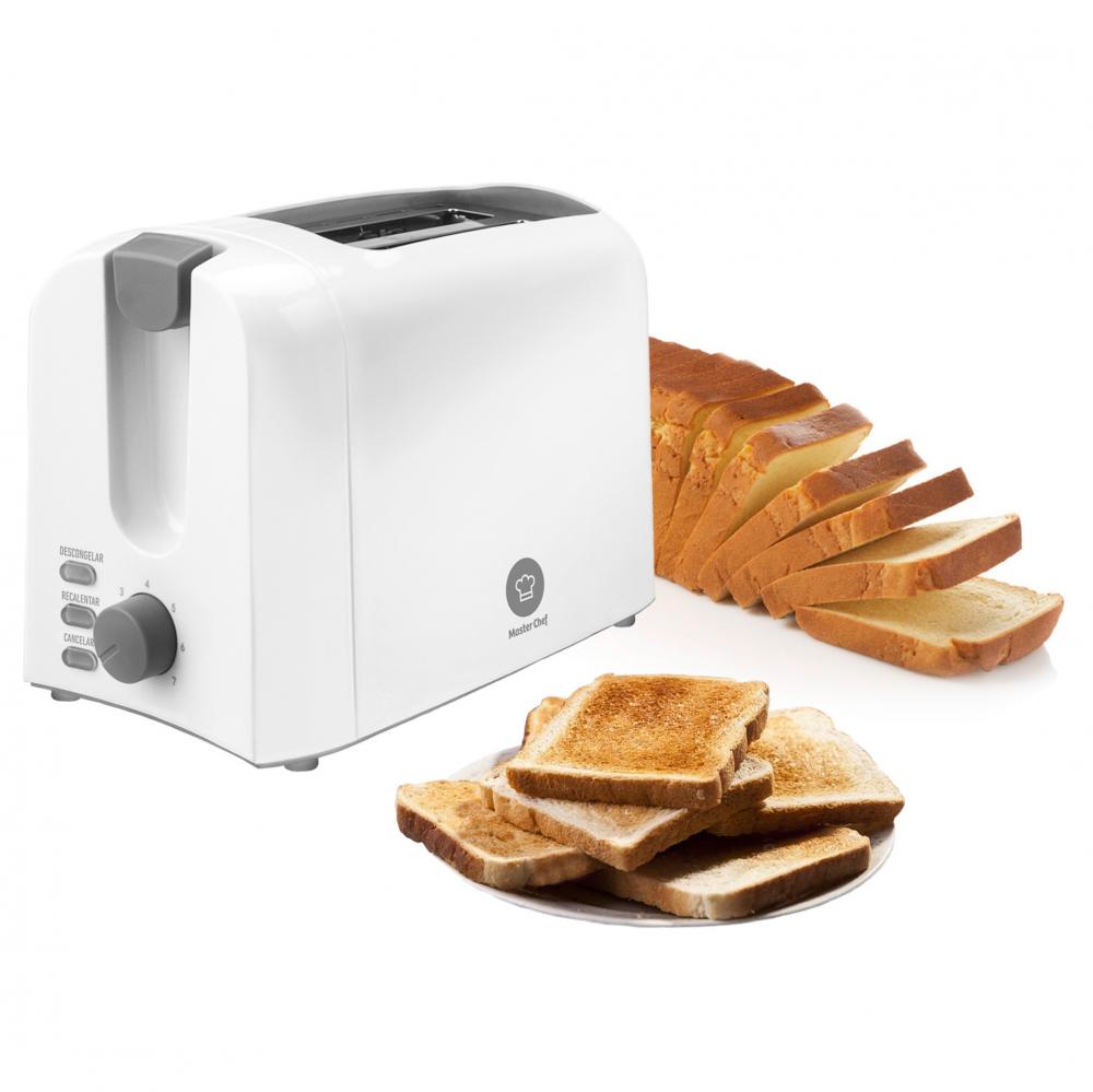 Tostadora 2 bahías con 7 niveles de tostados y 3 funciones: Calentar, Recalentar y Cancelar.